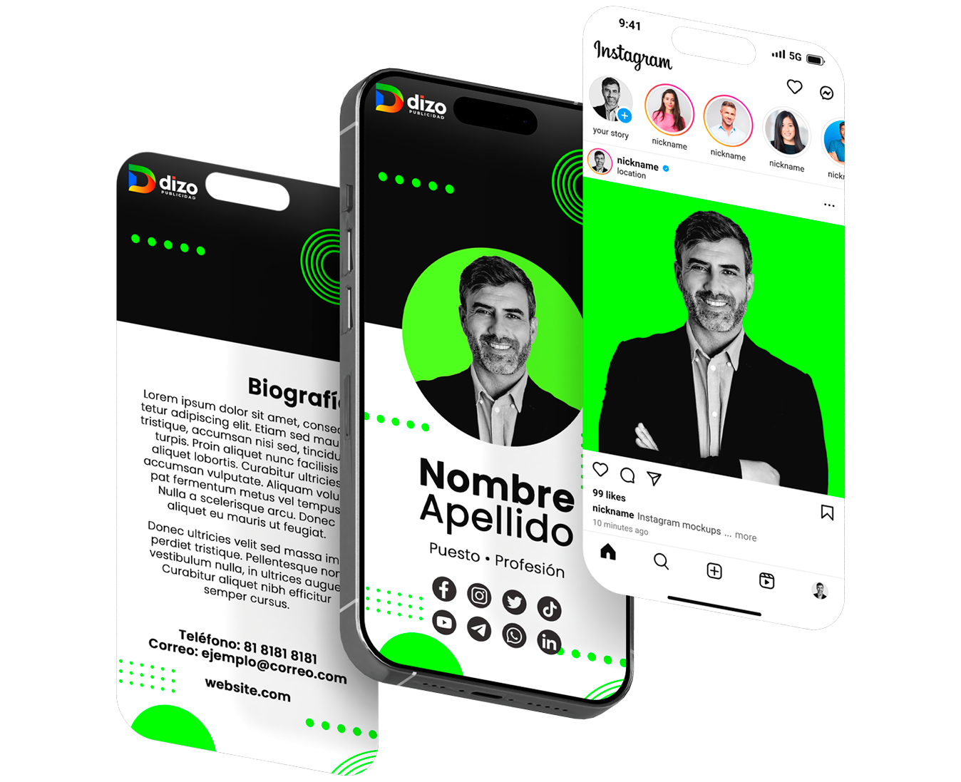 Una forma práctica y moderna de compartir tus redes sociales e información profesional con tus clientes o socios de negocio.